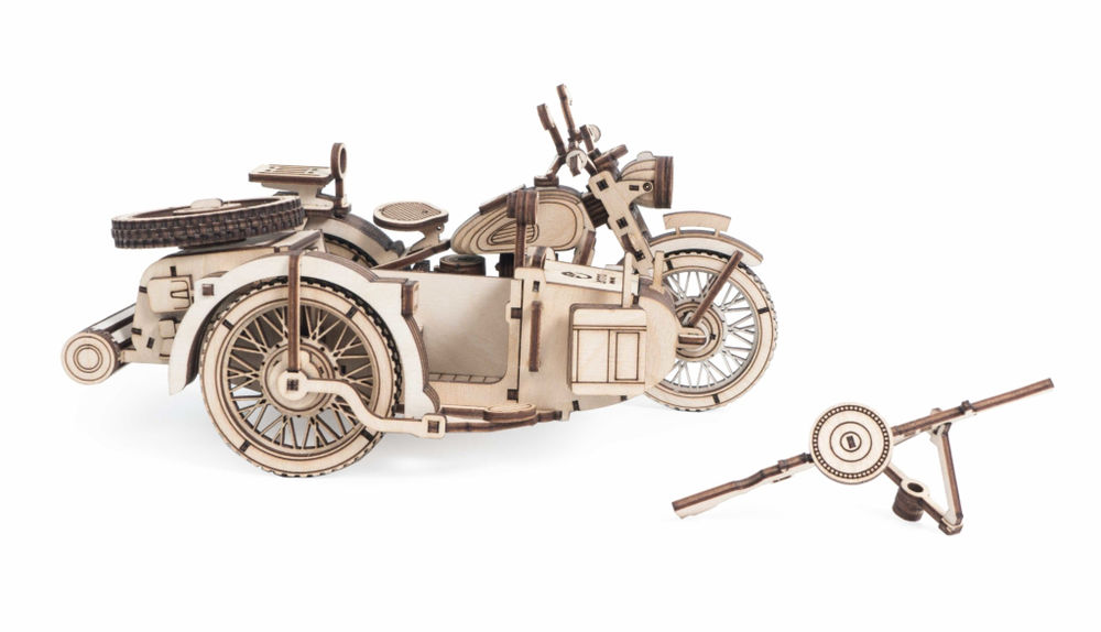 У сборной модели вращаются колеса, руль, пулемёт. Открывается багажник у коляски.