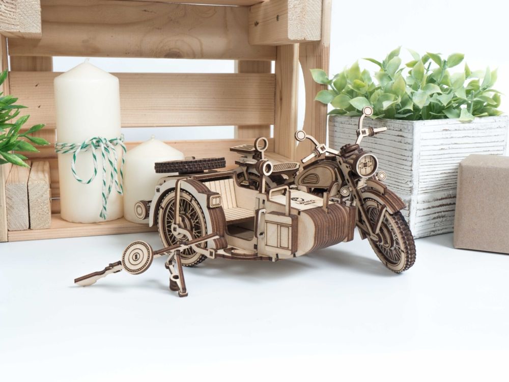 Все детали выполнены из качественной древесины и имеют насыщенный запах дерева. Модель после сборки можно раскрасить акриловыми красками или гуашью. Но даже без этого в результате получается полноценная красивая игрушка с подвижными элементами.