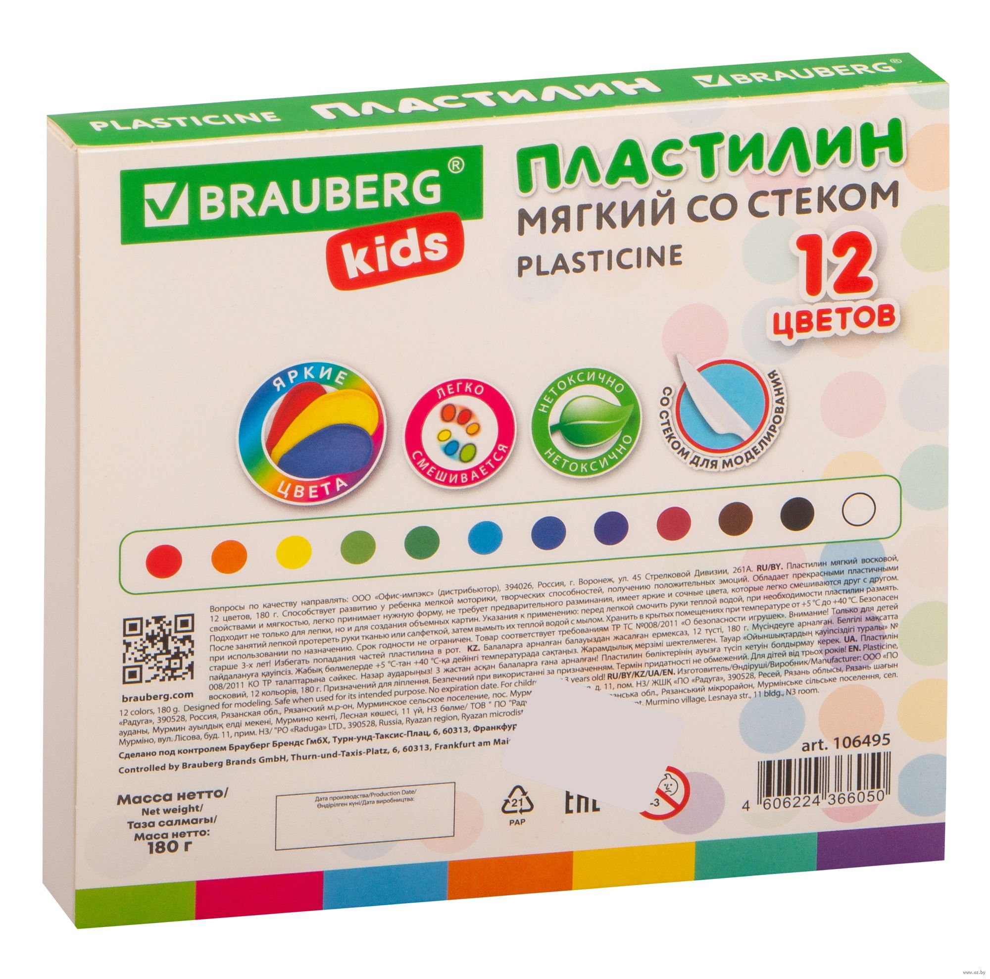Мягкий восковой пластилин Brauberg Kids предназначен для лепки и моделирования, способствует развитию мелкой моторики рук и пространственного мышления.