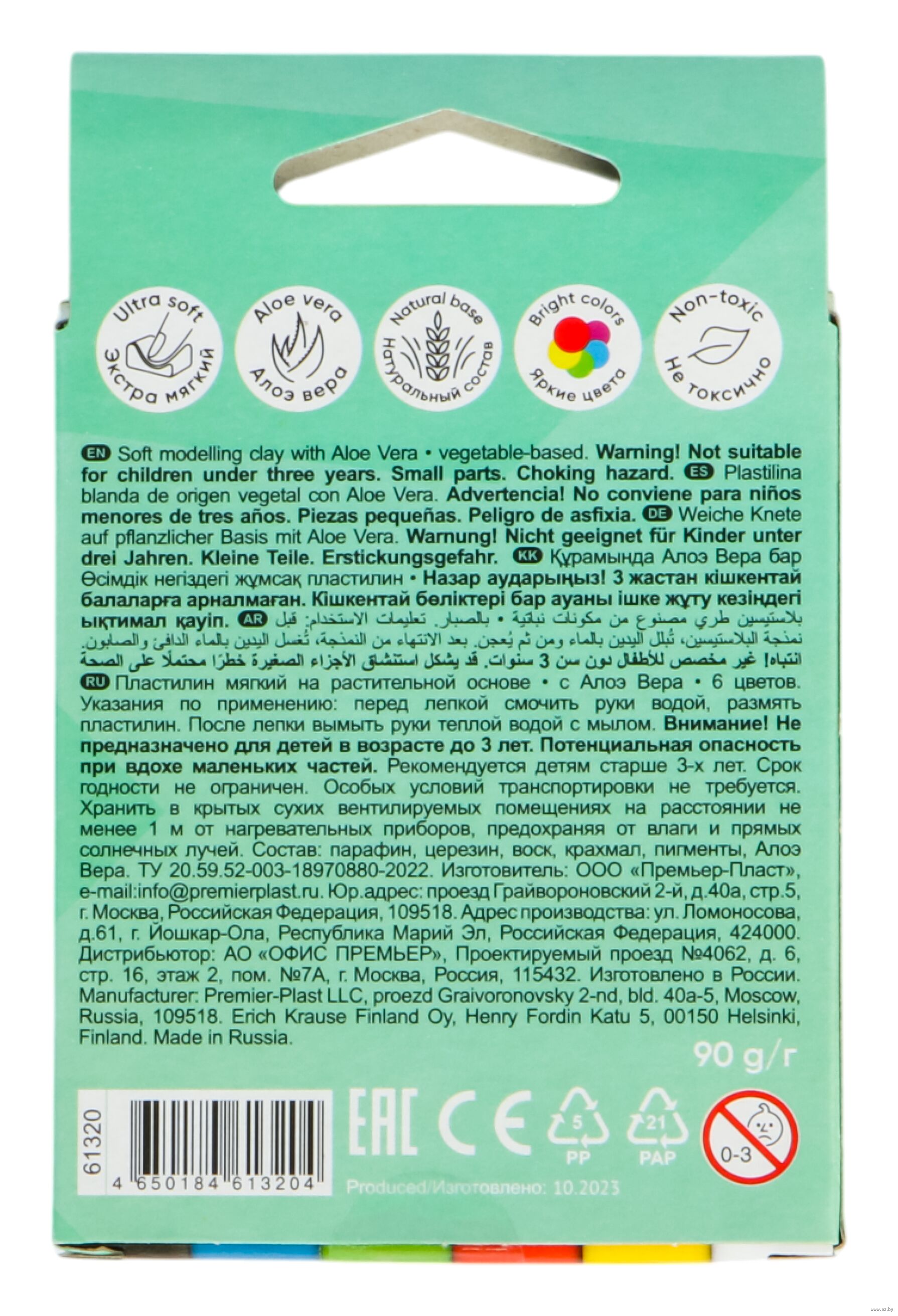 Мягкий пластилин на растительной основе ErichKrause с Алоэ Вера изготовлен с добавлением кукурузного крахмала, имеет мягкую консистенцию и особую пластичность, создан специально для дошкольников.