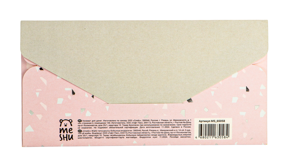 Подарочный конверт "Terrazzo" поможет эффектно преподнести универсальный презент. Кроме денег, в него можно положить сертификат, билет, записку с поздравлениями, небольшую открытку.