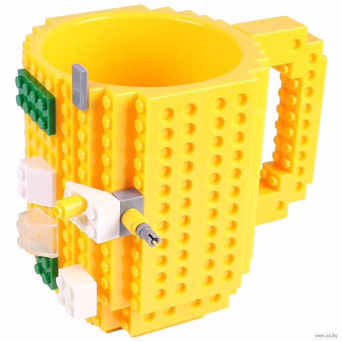 Кружка для горячих и холодных напитков, а также основа для конструирования. Совместима с деталями конструктора Lego.