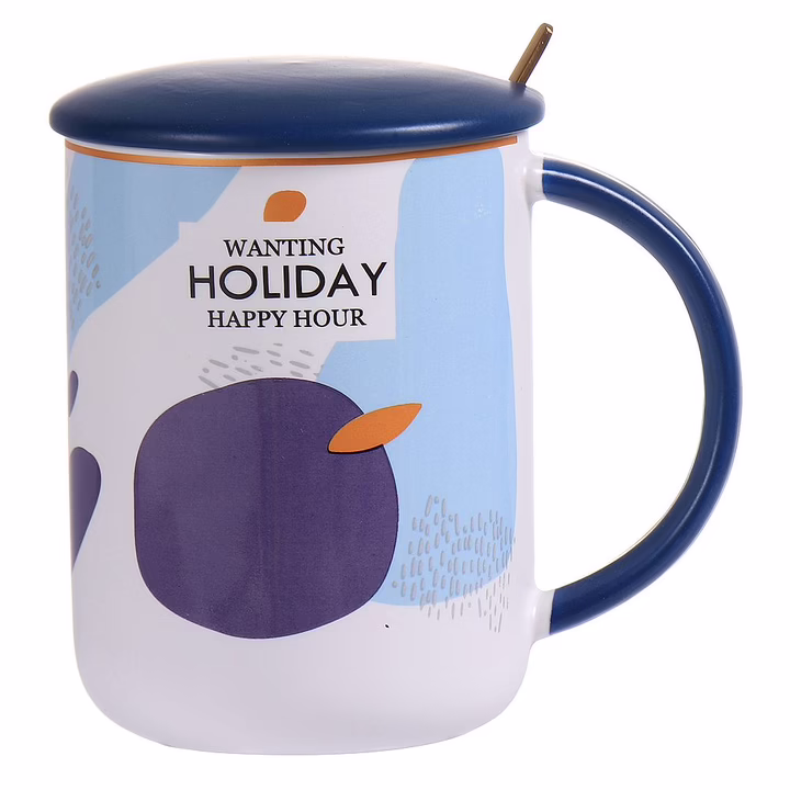 Кружка с крышкой и ложкой "Happy hour" (450 мл; волна)