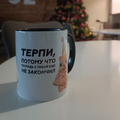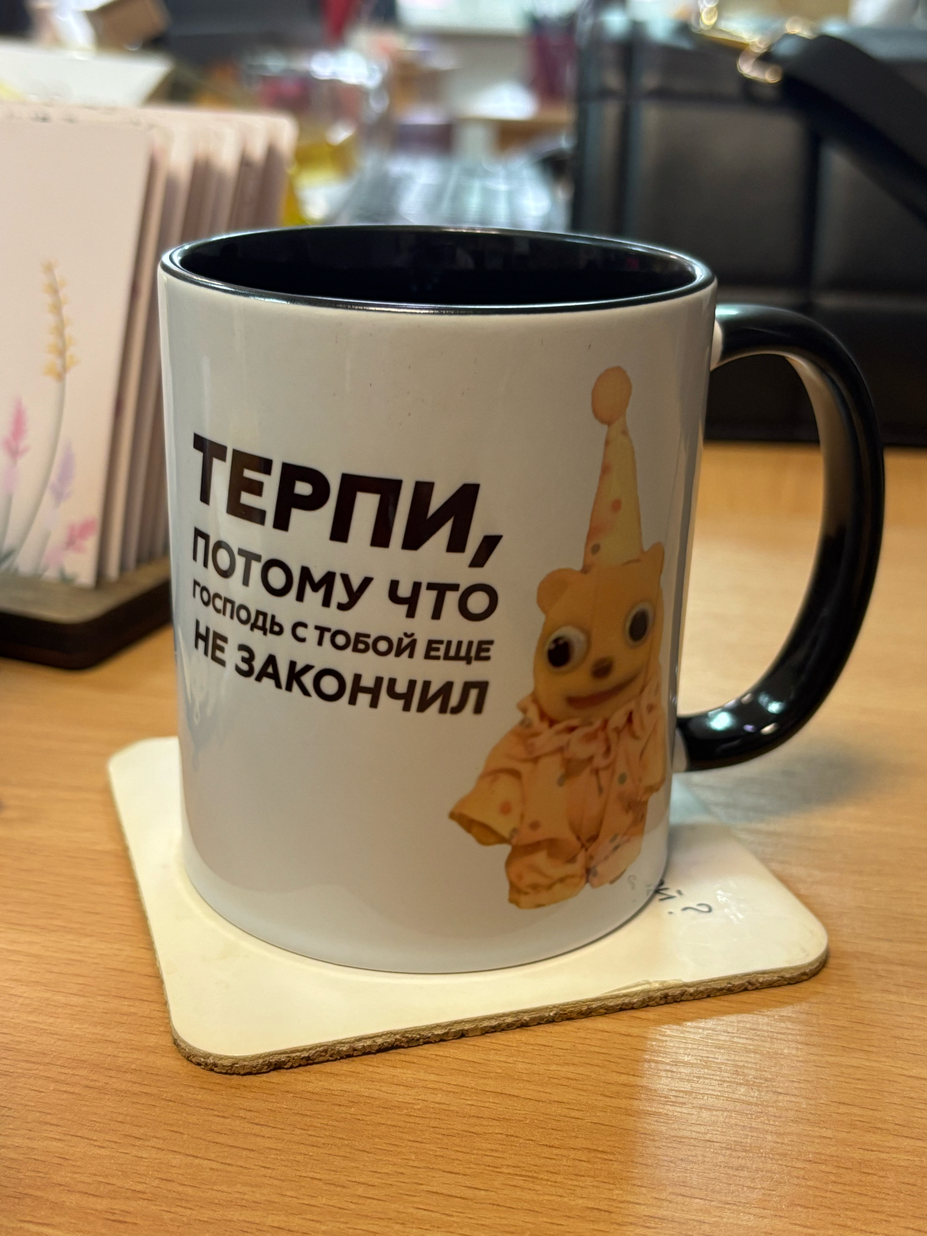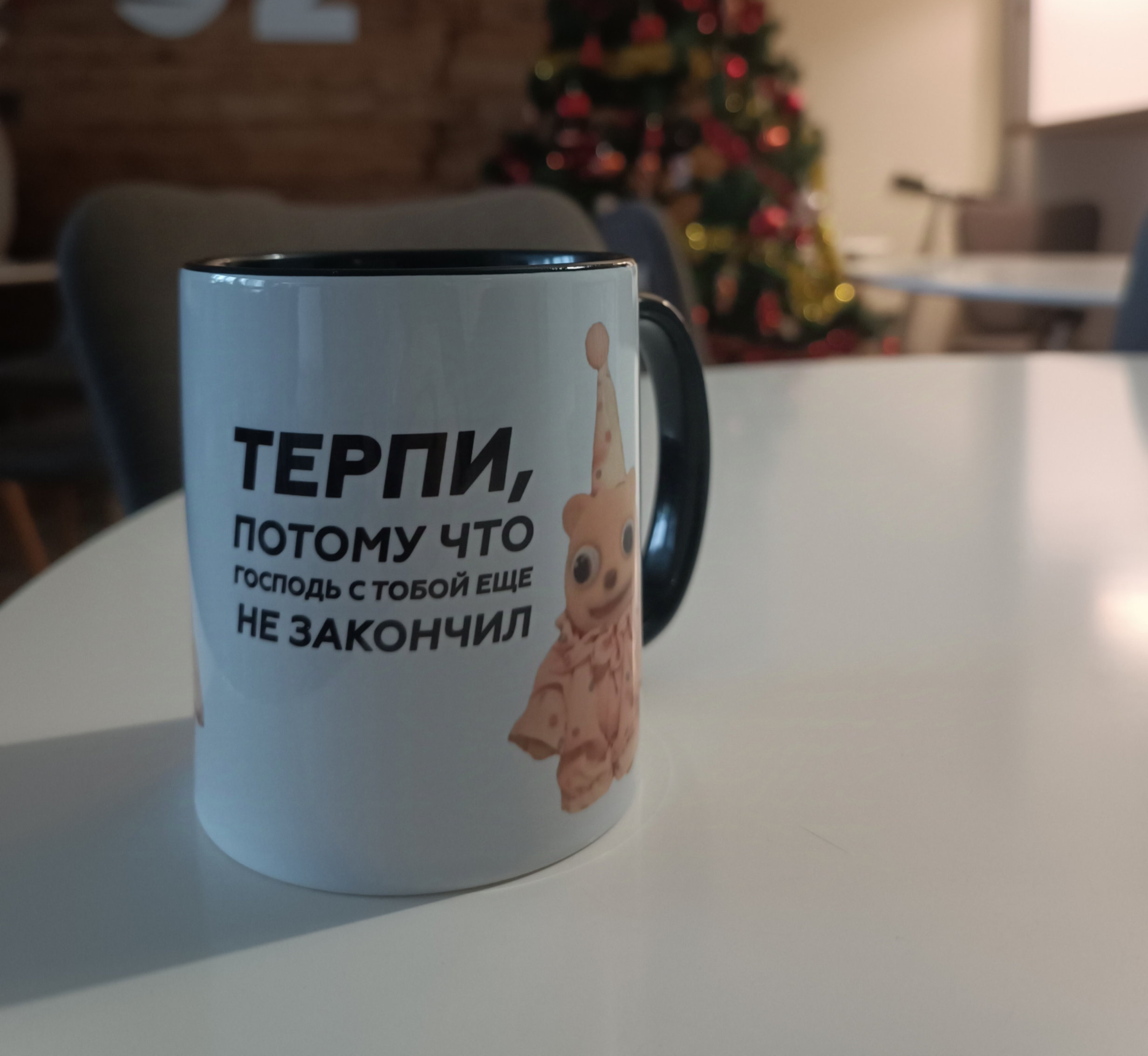 Рисунок нанесен при помощи надежного способа печати и не ощущается под пальцами. После покупки кружка не потрескается, а рисунок не сотрется со временем.