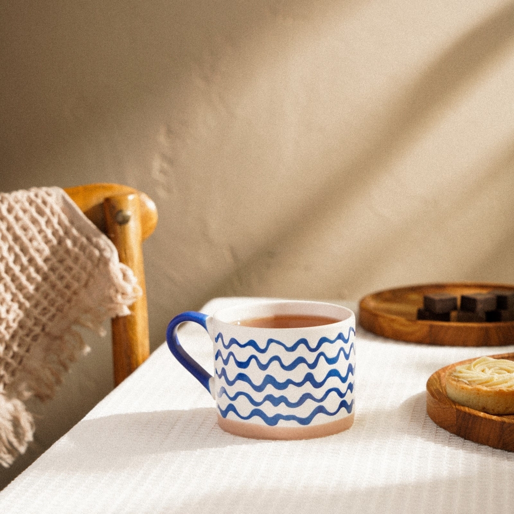 Кружка выполнена из высококачественного нового костяного фарфора, что делает её не только эстетически привлекательной, но и долговечной. Гладкая матовая поверхность придаёт изделию особый шарм, а утончённый узор добавляет изысканности, сохраняя при этом лаконичность скандинавского стиля.