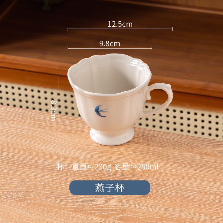 Нежный дизайн с ласточкой создает ощущение уюта и гармонии. Идеально для чая, кофе или какао.