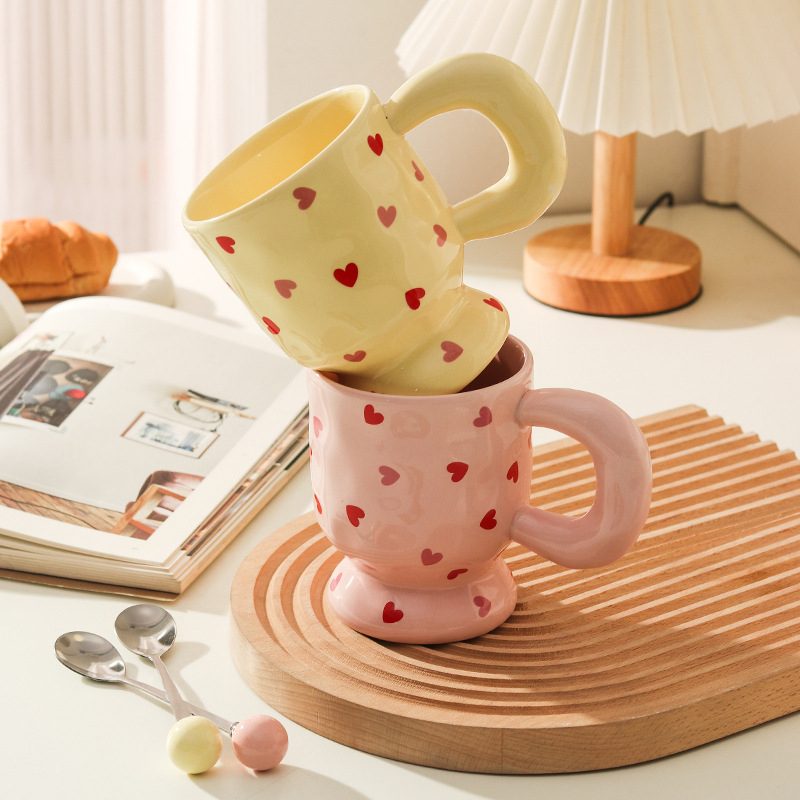Нежный дизайн с сердечками создает романтичное настроение. Идеальна для кофе, чая или какао.