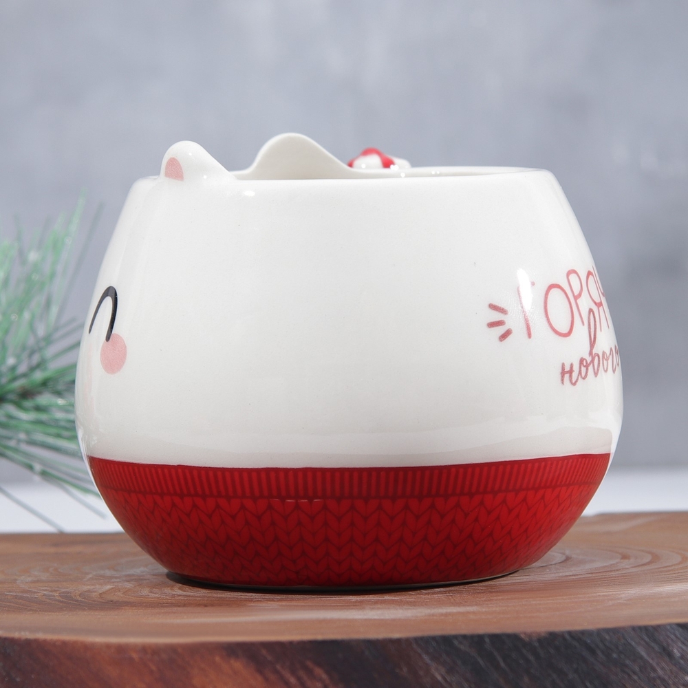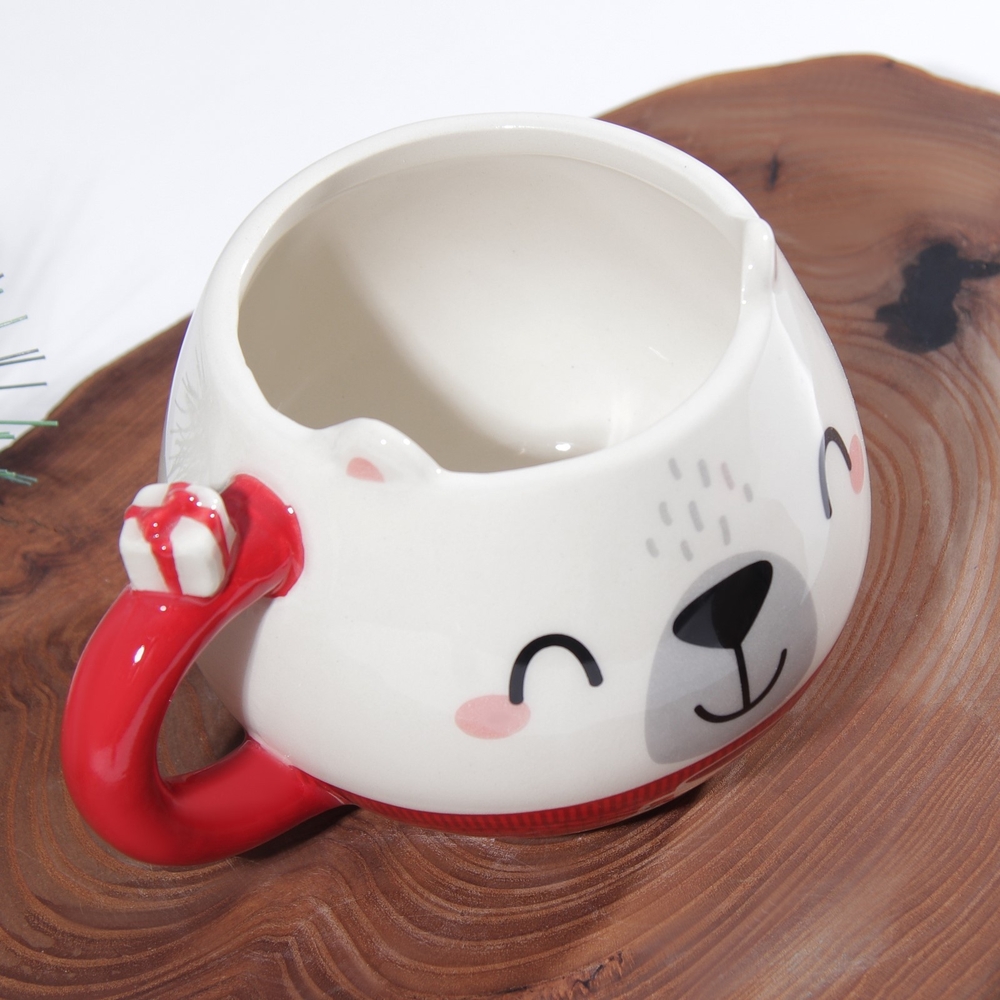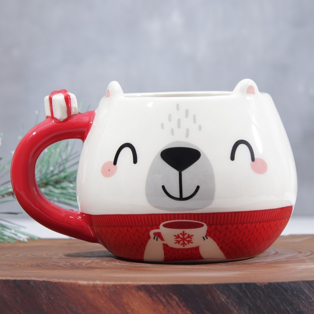 Новогодняя керамическая кружка в форме мишки – идеальный подарок и стильный аксессуар для вашей кухни или офиса.
