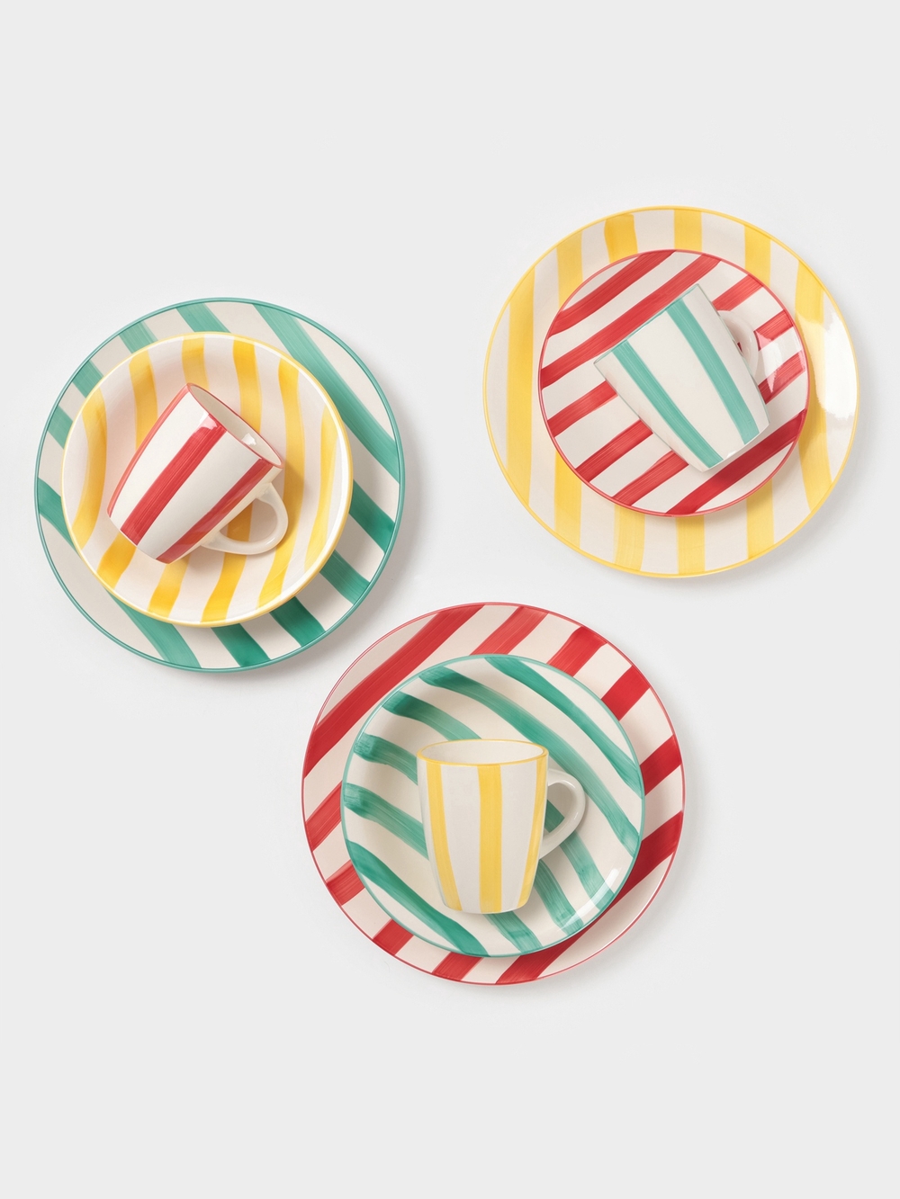 Яркие полосы на белом фоне создают динамичный образ, заряжающий энергией на весь день.
