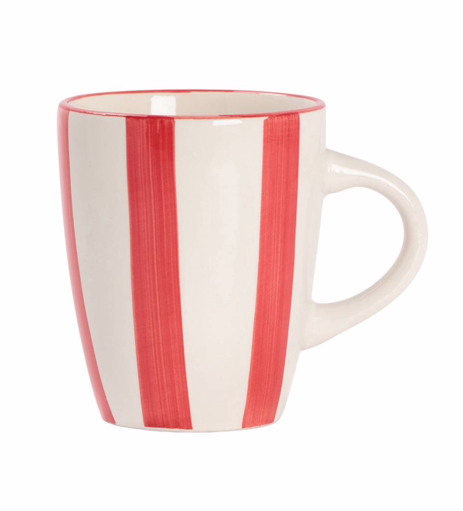 Начните утро с бодрящего кофе в этой красной полосатой керамической кружке. Ее удобный объем 360 мл идеально подходит для любимых горячих напитков.