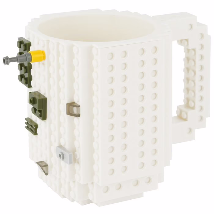 Кружка для горячих и холодных напитков, а также основа для конструирования. Совместима с деталями конструктора Lego.