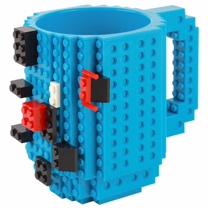 Кружка для горячих и холодных напитков, а также основа для конструирования. Совместима с деталями конструктора Lego.
