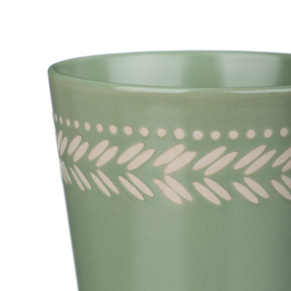 Кружка "Треция" объемом 330 мл в нежном фисташковом цвете станет вашим идеальным спутником для уютных моментов с любимыми напитками. Изготовленная из высококачественной керамики, она не только приятна на ощупь, но и устойчива к ежедневному использованию, сохраняя свой изысканный вид на долгое время.