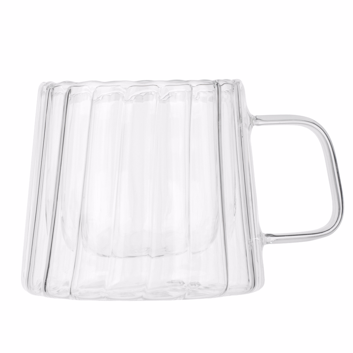 Кружка с неровным краем и двойными стенками "Лава" выполнена из прочного прозрачного стекла и привлекает внимание оригинальным дизайном с эффектом ручной работы.