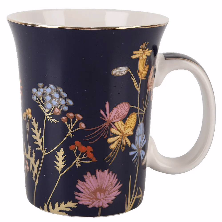 Каждый предмет этой коллекции украшен изящным дизайном цветов на глубоком синем фоне, дополненным элегантным золотым декором. Эта посуда придает особый шарм и роскошь вашему сервированному столу.