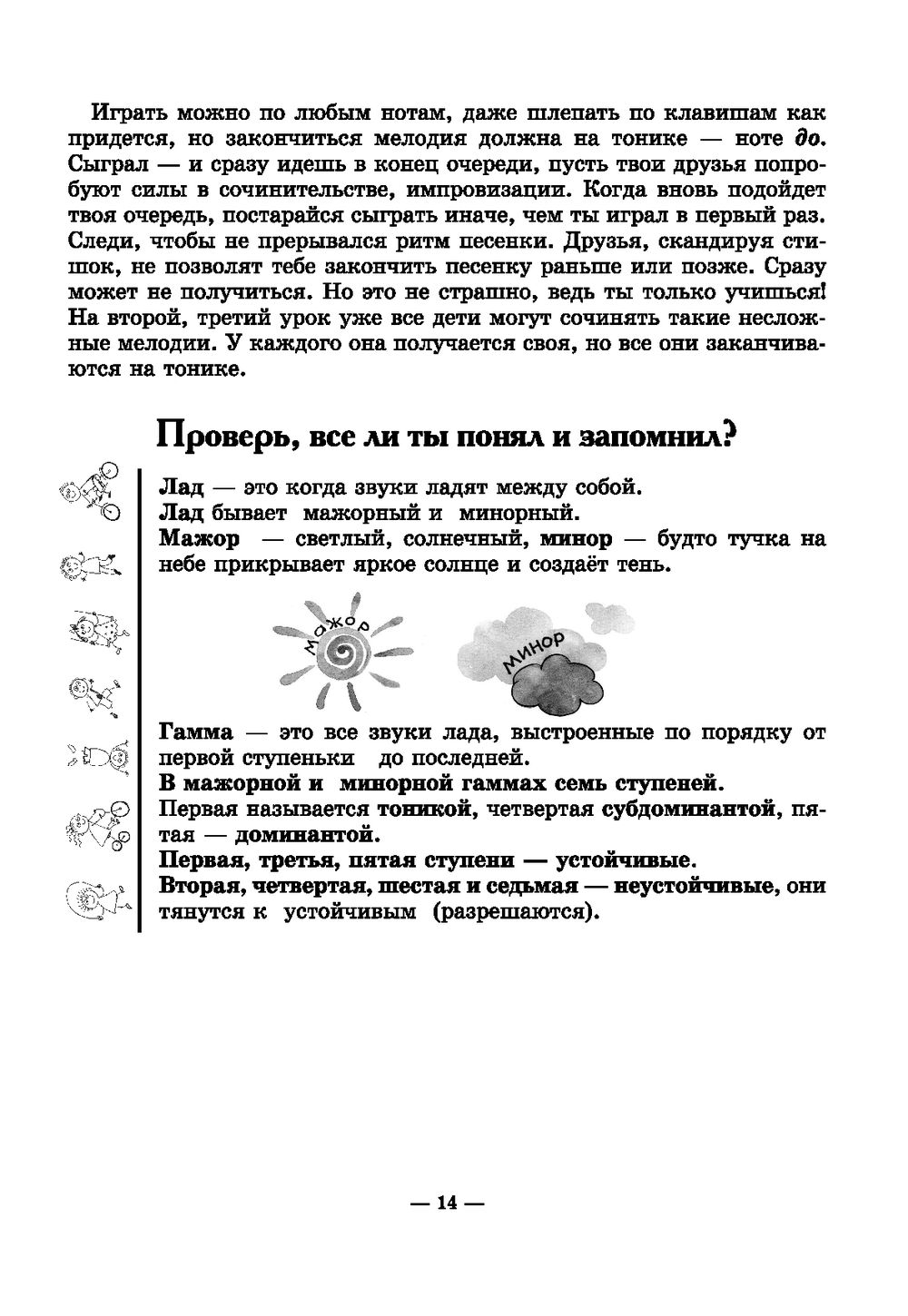 Книга предназначена для учеников музыкальной школы, для родителей учеников, желающих помочь своим детям освоить азы теории музыки, а также для преподавателей музыкальных школ, проявляющих интерес к различным направлениям в современной музыкальной педагогике. Главная особенность предлагаемой методики заключается в том, что постижение теоретических основ музыки происходит благодаря обучению детей на уроках сольфеджио сочинению мелодий, импровизации, подбору аккомпанемента.