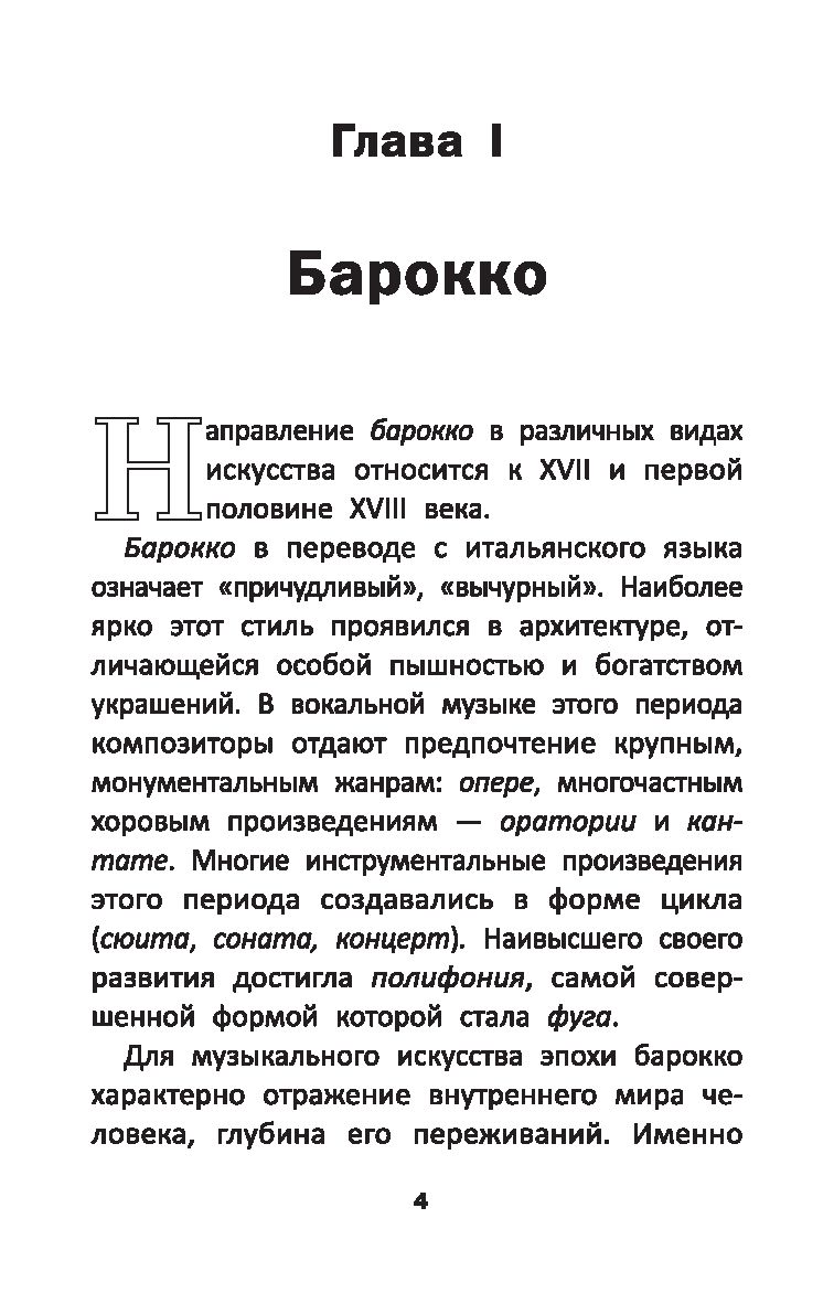 Данное учебное пособие предназначено для учащихся детских музыкальных школ и школ искусств, изучающих предмет "Музыкальная литература" 2-й год. Пособие полностью соответствует программе курса. В него включены сведения об основных направлениях западноевропейской музыки XVIII-XIX веков – барокко, классицизм, романтизм, ведущих музыкальных жанрах и формах, связанных с этими эпохами, а также биографии выдающихся композиторов – И. С. Баха, Й. Гайдна, В. Моцарта, Л. Бетховена, Ф. Шуберта, Ф. Шопена и анализ наиболее известных их произведений.