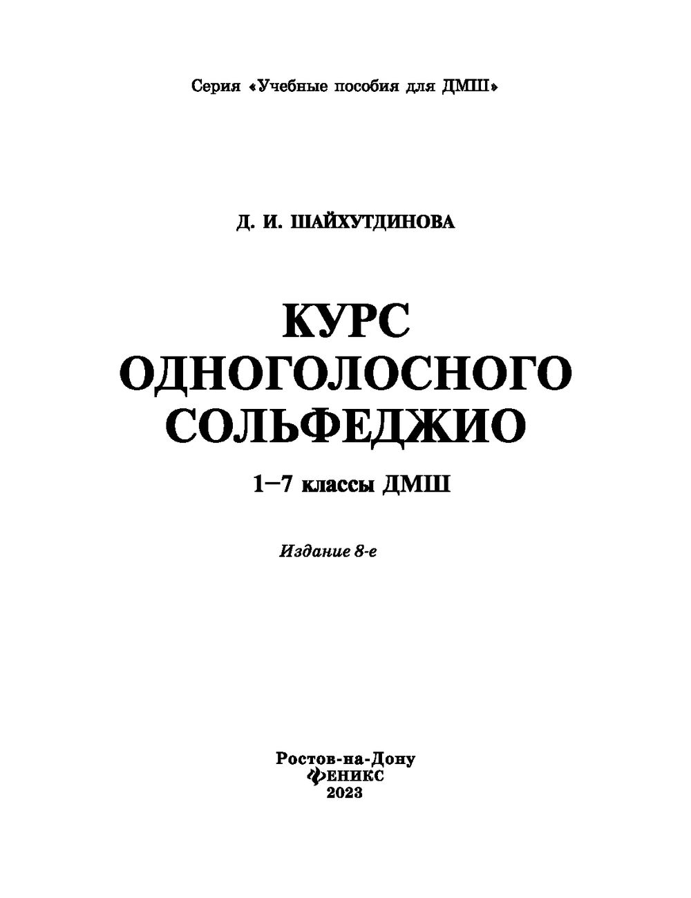 Курс одноголосного сольфеджио. 1-7 классы ДМШ