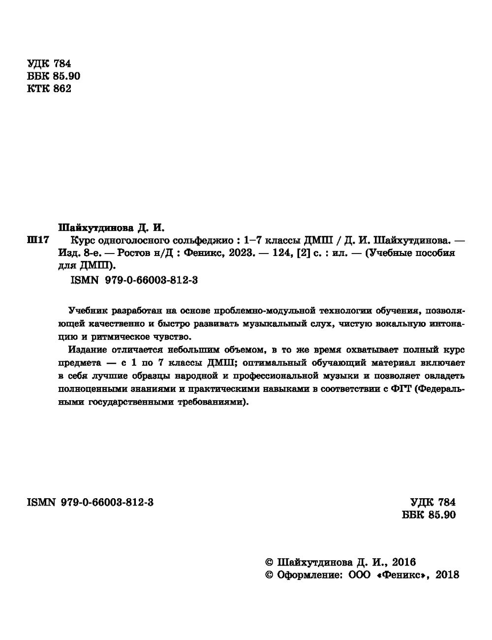 Издание отличается небольшим объемом, в то же время охватывает полный курс предмета – с 1 по 7 классы ДМШ; оптимальный обучающий материал включает в себя лучшие образцы народной и профессиональной музыки и позволяет овладеть полноценными знаниями и практическими навыками в соответствии с ФГТ (Федеральными государственными требованиями).
