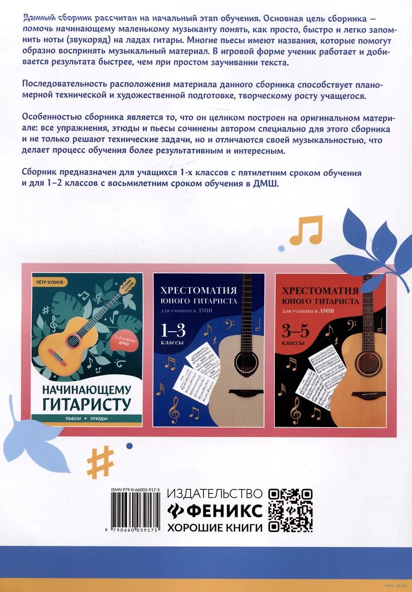 Данный сборник рассчитан на начальный этап обучения. Основная цель сборника – помочь начинающему маленькому музыканту понять, как просто, быстро и легко запомнить ноты (звукоряд) на ладах гитары. Многие пьесы имеют названия, которые помогут образно воспринять музыкальный материал. В игровой форме ученик работает и добивается результата быстрее, чем при простом заучивании текста. Последовательность расположения материала данного сборника способствует планомерной технической и художественной подготовке, творческому росту учащегося.