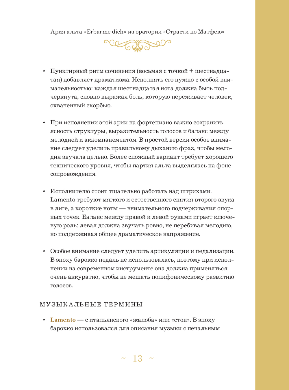 Этот сборник создан для тех, кто верит, что знать о музыкальных произведениях так же важно, как и уметь их играть. Он рассчитан на исполнителей всех возрастов с навыками игры на фортепиано среднего и продвинутого уровня.