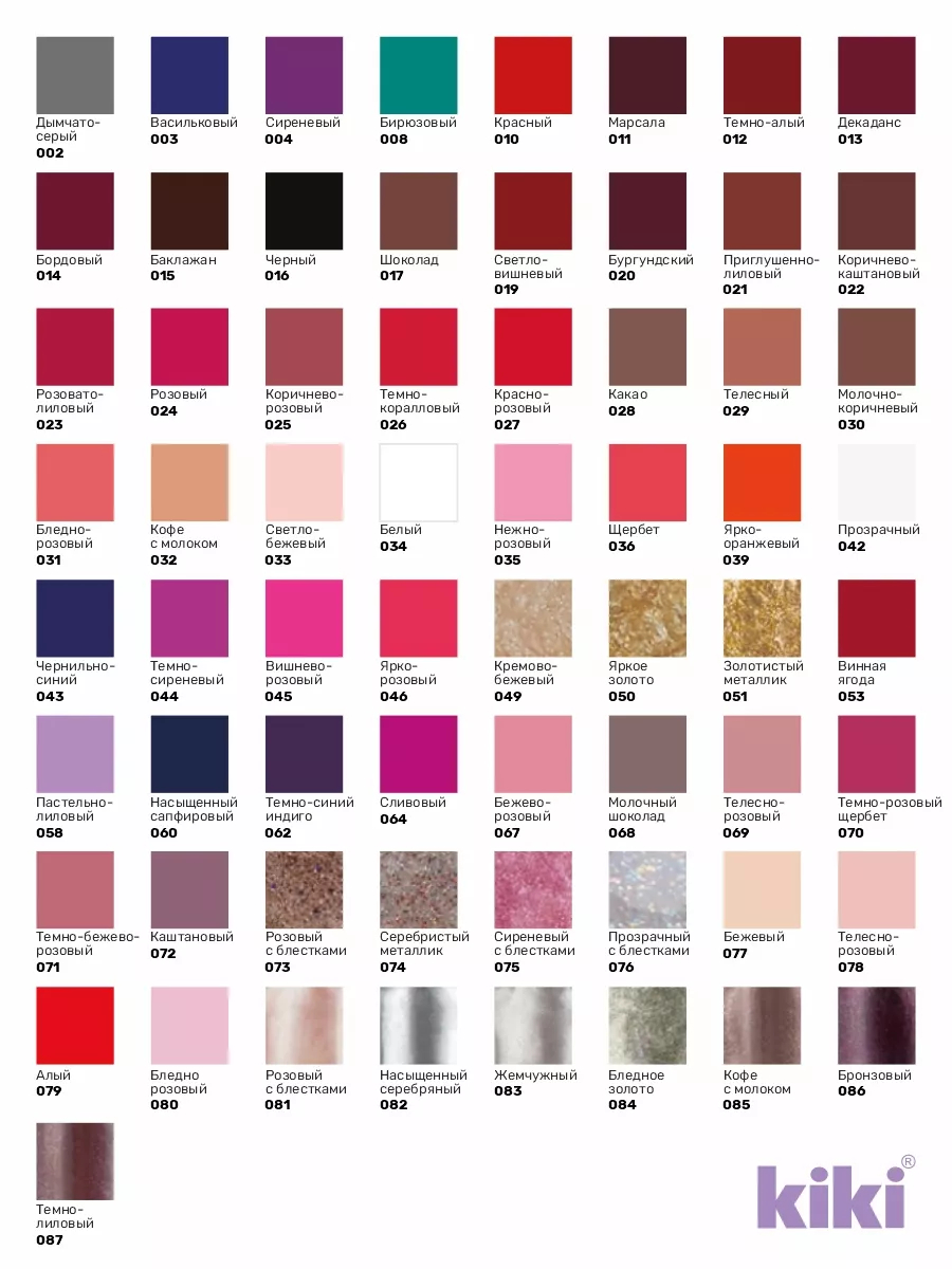 Лак "Кики" позволяет сделать салонный маникюр в домашних условиях, при этом сэкономить время и деньги. Выбирайте свой тон лака для ногтей и будьте неотразимой!