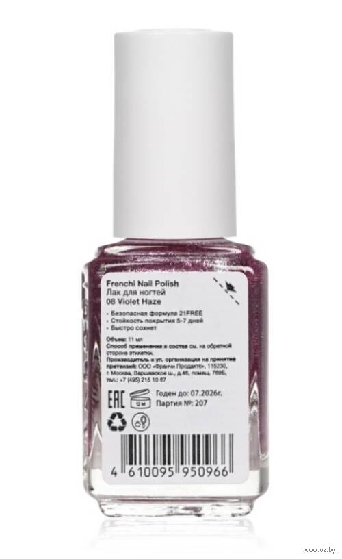 Лак для ногтей "Frenchi" тон: 08, розово-фиолетовая дымка