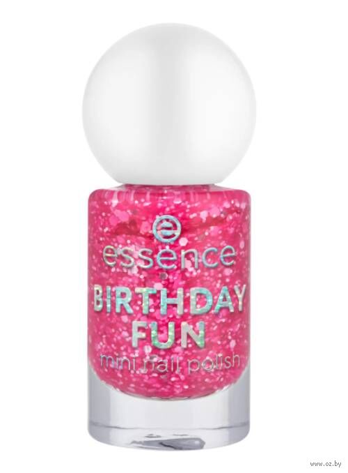 Большое веселье в маленьком флаконе – мини-лак для ногтей Essence "Birthday Fun". В его игровой упаковке с круглым колпачком содержится лак для ногтей с легким эффектом блеска с розовыми оттенками.