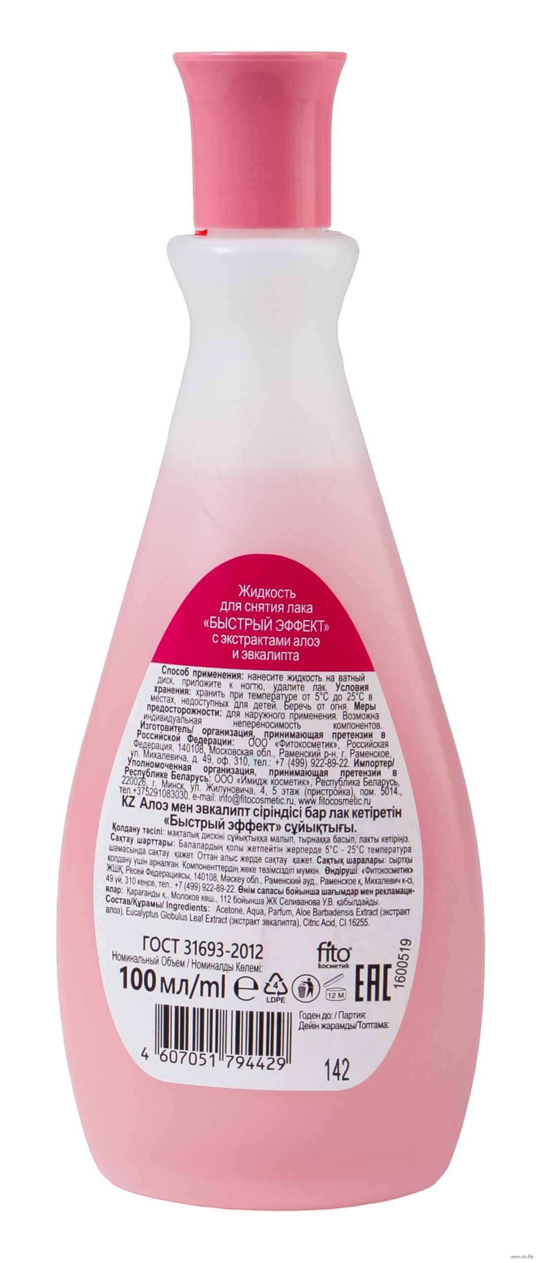 Жидкость для снятия лака "Алоэ и эвкалипт" (100 мл)
