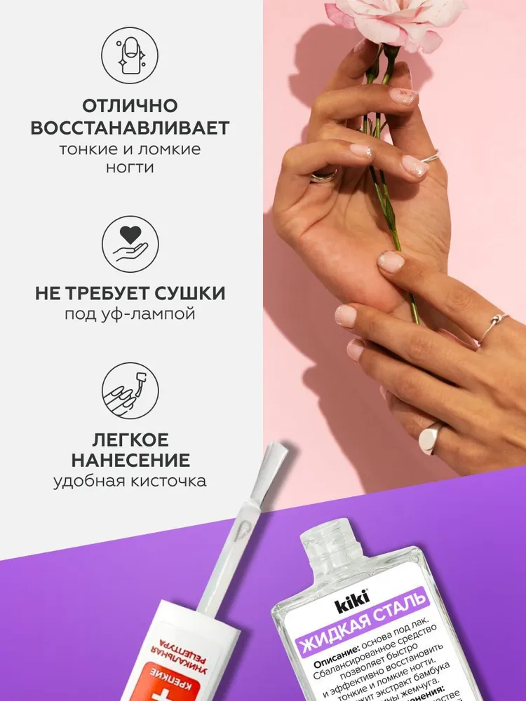 Позволяет быстро и эффективно восстановить тонкие и ломкие ногти. Содержит экстракт бамбука и протеины жемчуга.