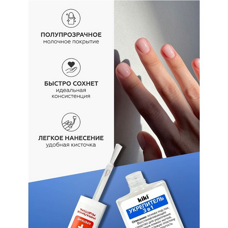 Эффект 3 в 1: восстановление, питание и укрепление ногтей.