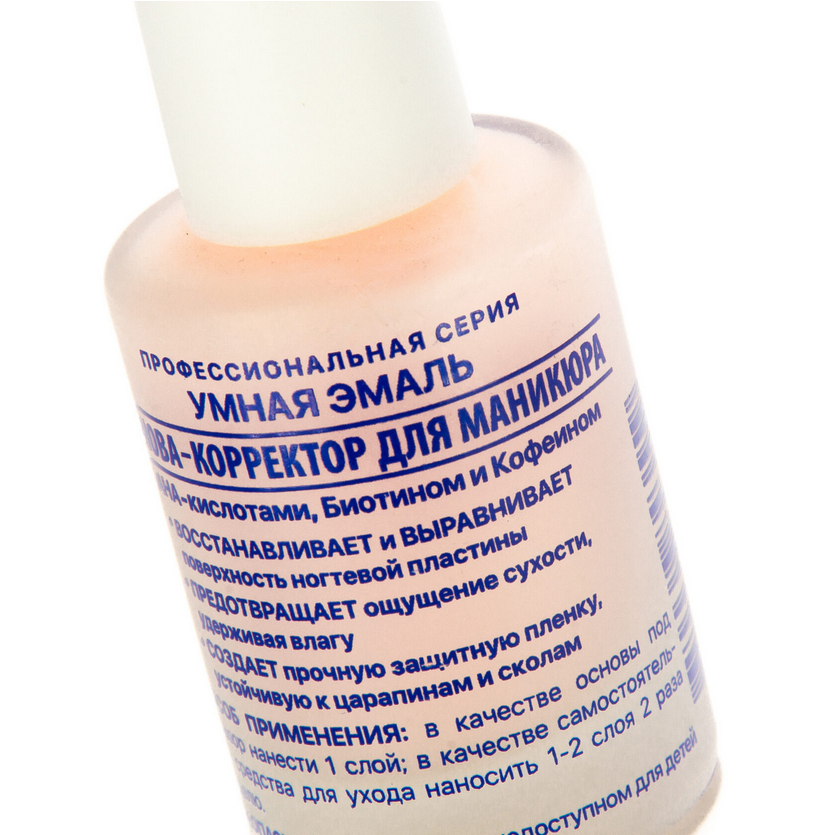 В качестве корректора обладает косметическим эффектом: маскирует неровности ногтевой пластины, выравнивает тон и придаёт сатиновый финиш.