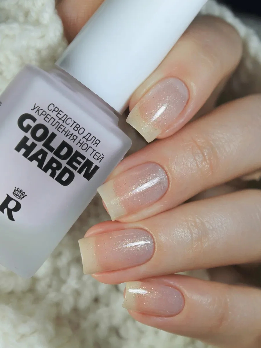 Хорошее средство. Наношу в два слоя, сохнет быстро, получается почти прозрачное покрытие с мелкой золотой пылью. Долго держится, даже не смотря на активную домашнюю работу. Ногти под ним не слоятся и не ломаются. В результате получается двойной эффект: укрепление ногтей и повседневный ненавязчивый вариант маникюра. Очень довольна.