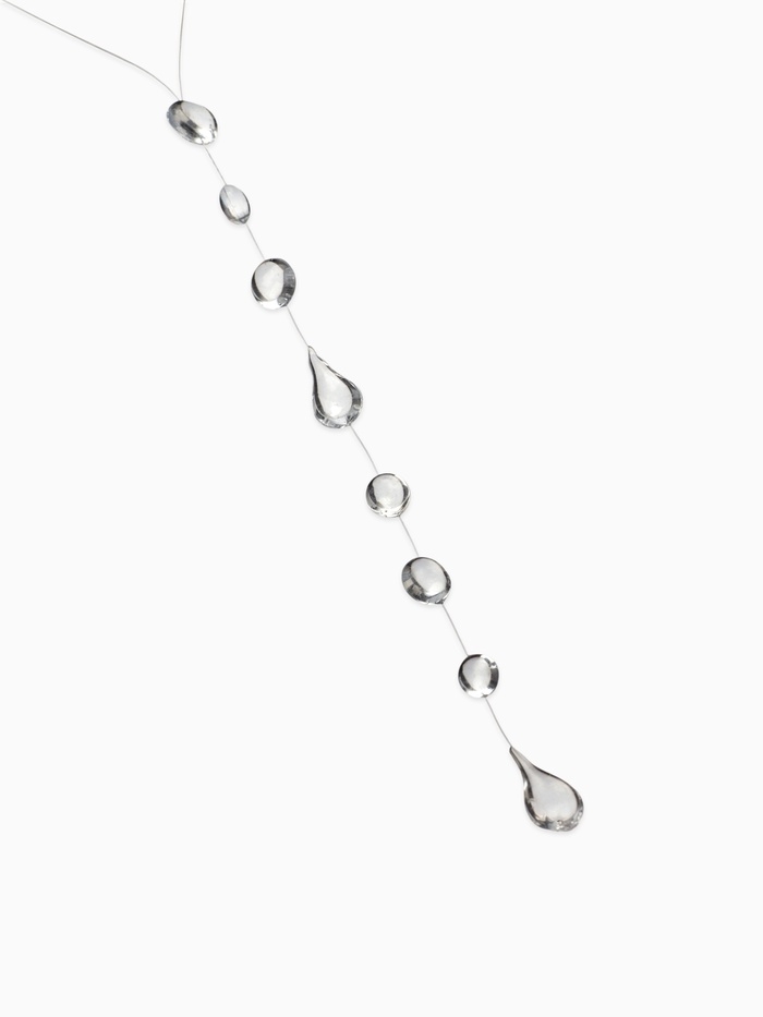 Кулон "Капли росы" – нежное украшение из белых прозрачных элементов, подвешенных на легкой серебряной леске, добавляющее в образ свежесть и изящество.