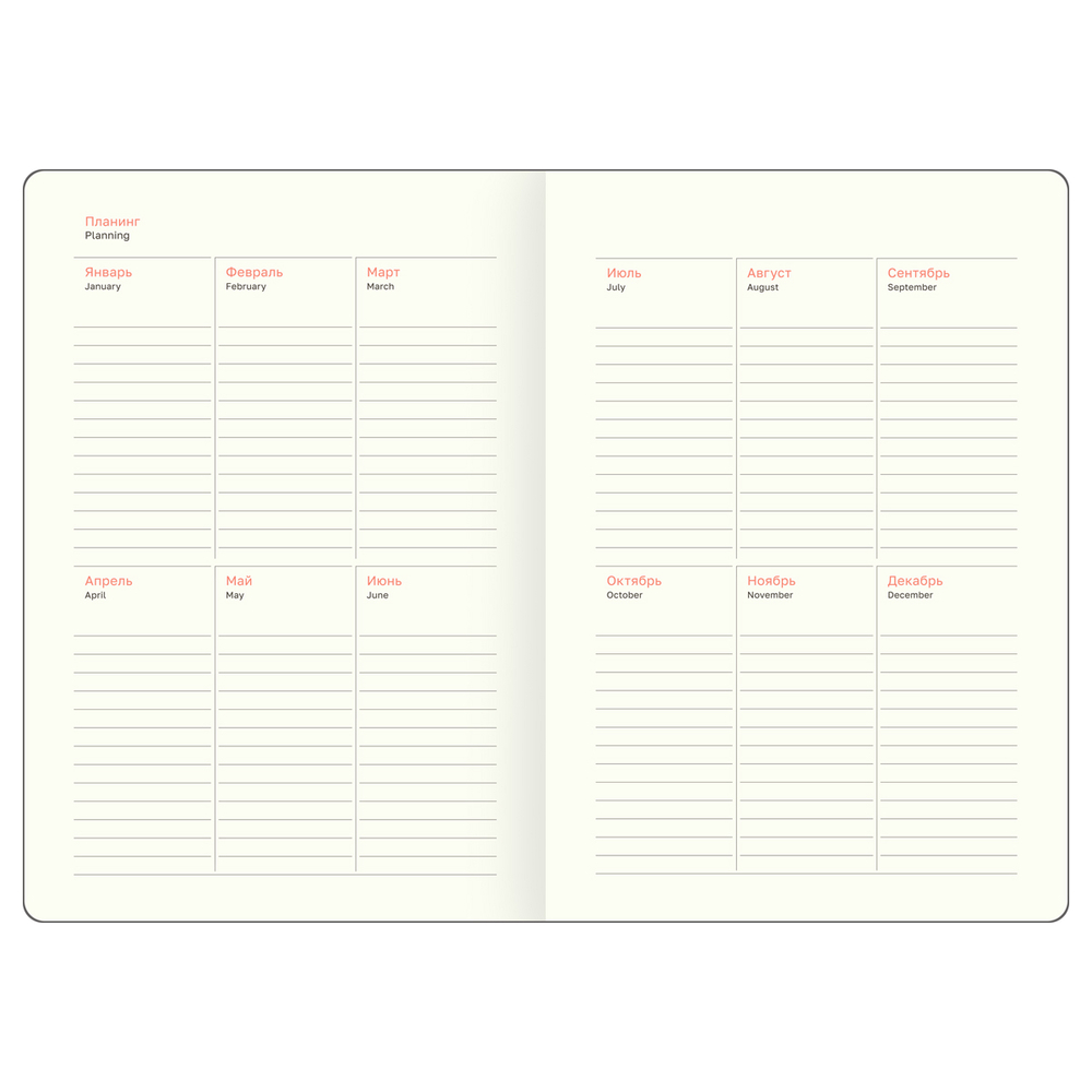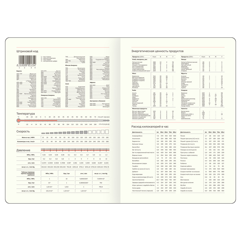 Перфорированные уголки и закладка-ляссе обеспечат комфорт и удобство при использовании. В ежедневнике предусмотрена справочная информация, годовой планер, календарь и другие полезные сведения.