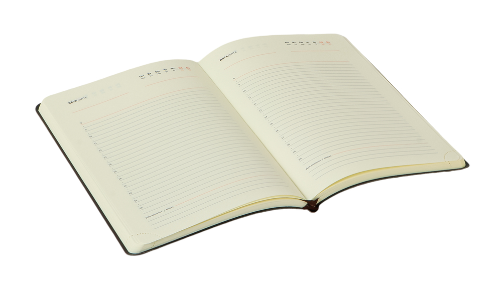 Изделие состоит из 136 листов тонированной бумаги плотностью 70 г/м2, которая подходит для любых типов ручек и не будет просвечиваться. В линованный блок с полем для даты и планингом удобно записывать встречи, идеи и задачи. Уголки листов с перфорацией.