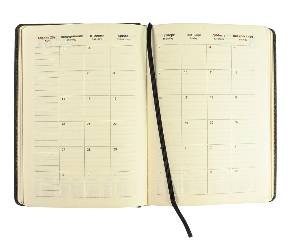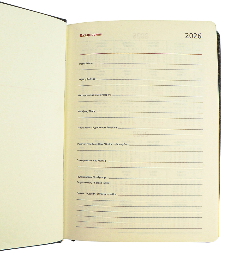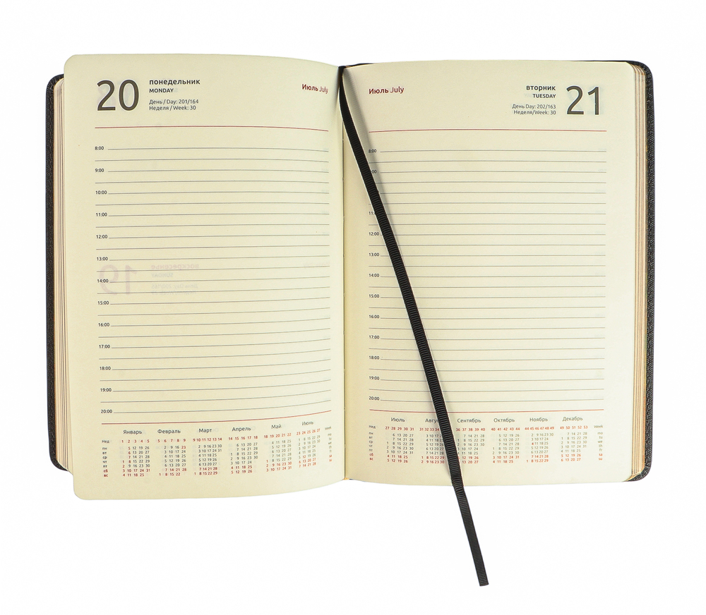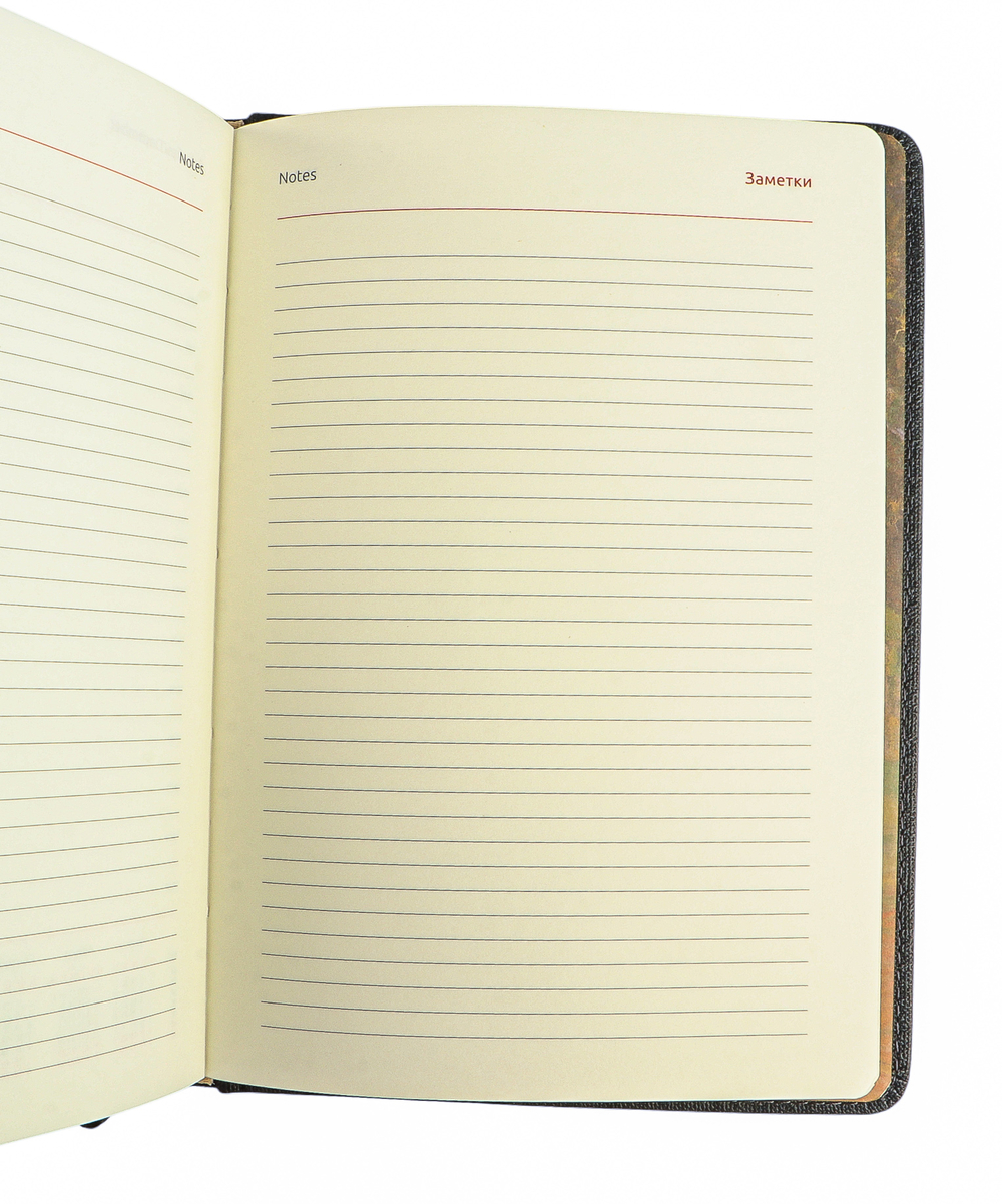 Ежедневник формата А5 размером 145х205 мм содержит 176 листов высококачественной бумаги цвета слоновой кости с повышенной плотностью 80 г и пантонной печатью в 2 краски.