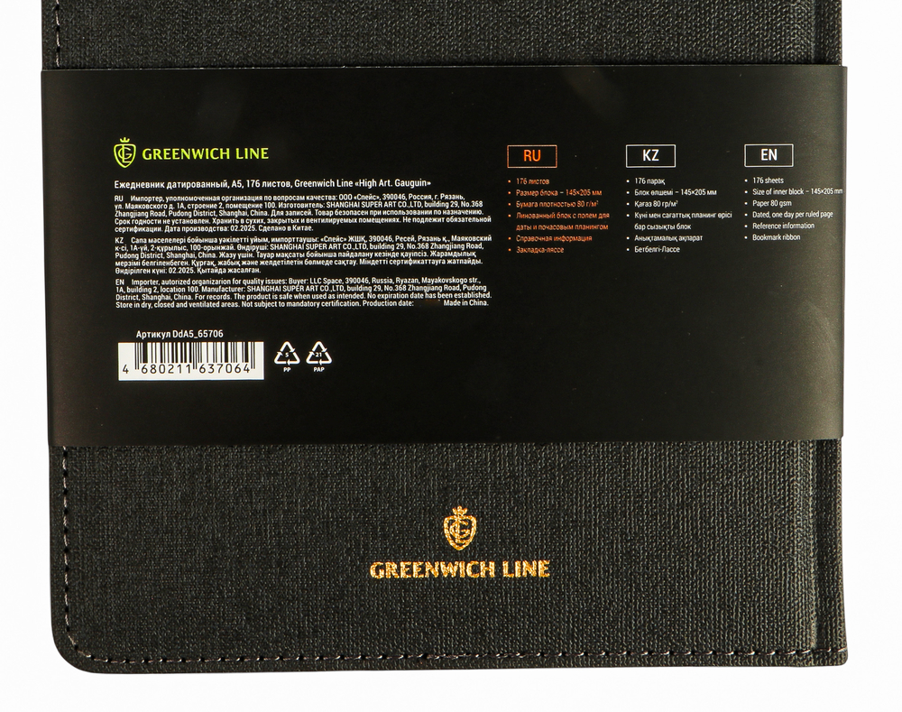 Ежедневник формата А5 размером 145х205 мм содержит 176 листов высококачественной бумаги цвета слоновой кости с повышенной плотностью 80 г и пантонной печатью в 2 краски.