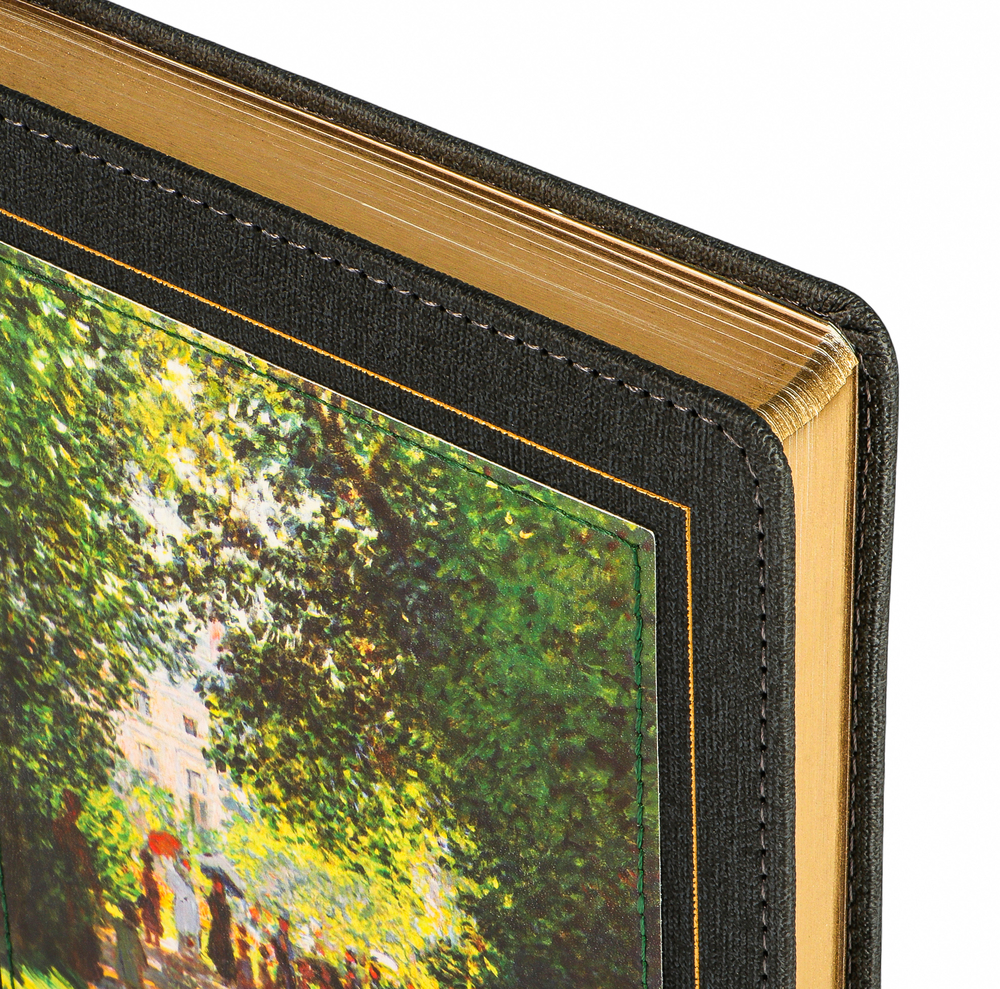 Обложка украшена картинами по мотивам известных художников. Золотой срез придает ежедневнику особый шарм.