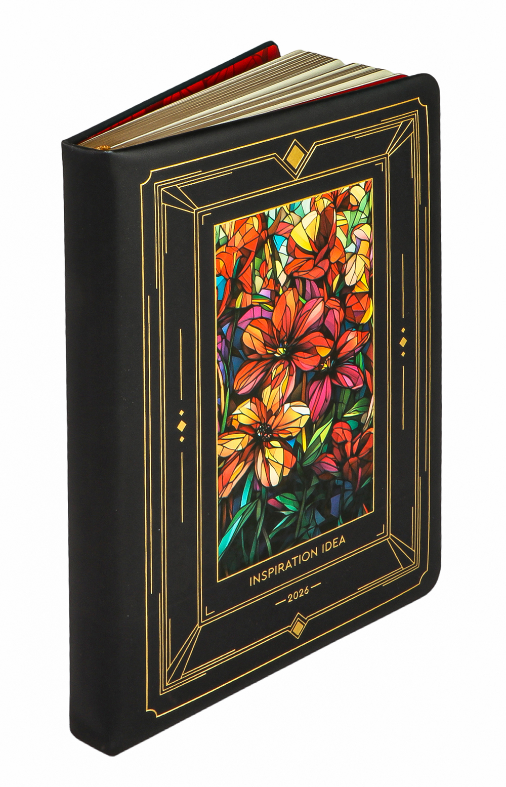 Прикоснитесь к изысканности с новыми ежедневниками Grenwich Line, облаченными в роскошную черную кожаную обложку. Сквозь прямоугольное окно словно пробивается свет, создавая эффект настоящего витража.