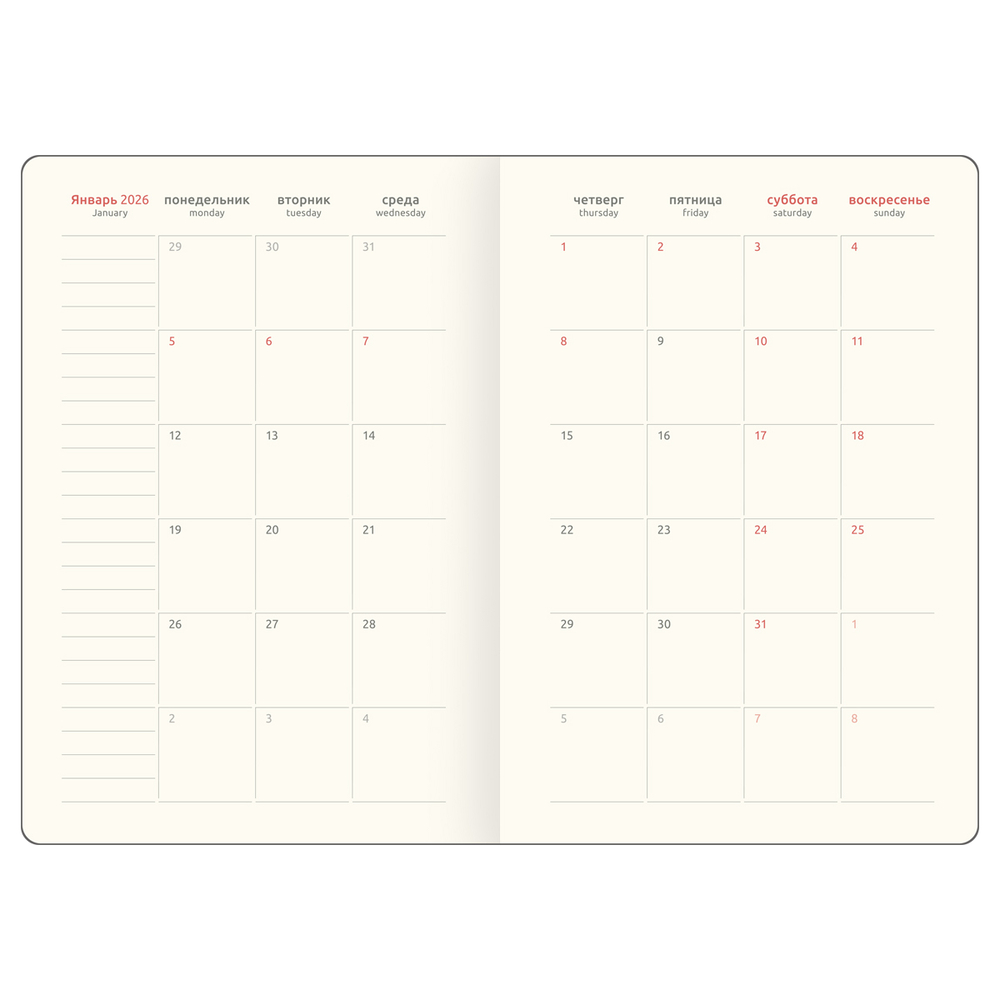 Аккуратные линии для записей, разные разделы для планирования и заметок – всё создано для вашего удобства. Все детали продуманы так, чтобы поддерживать вдохновение и мотивацию на высоком уровне.