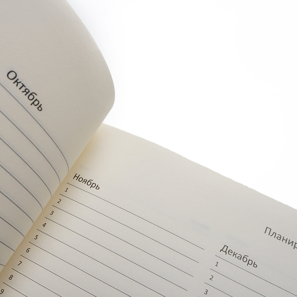 Твердый переплет и оформленный корешок делает этот ежедневник стильным аксессуаром.