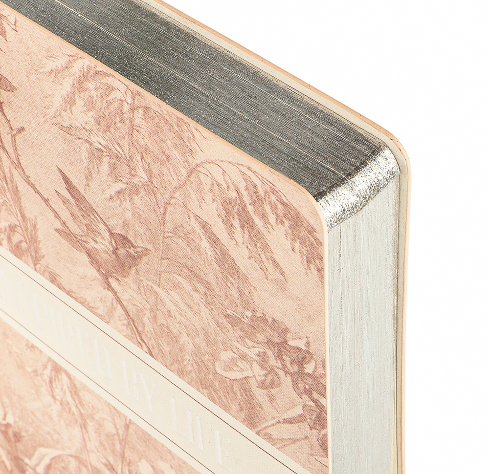 Изысканная обложка из искусственной кожи украшена тиснением серебряной фольгой.