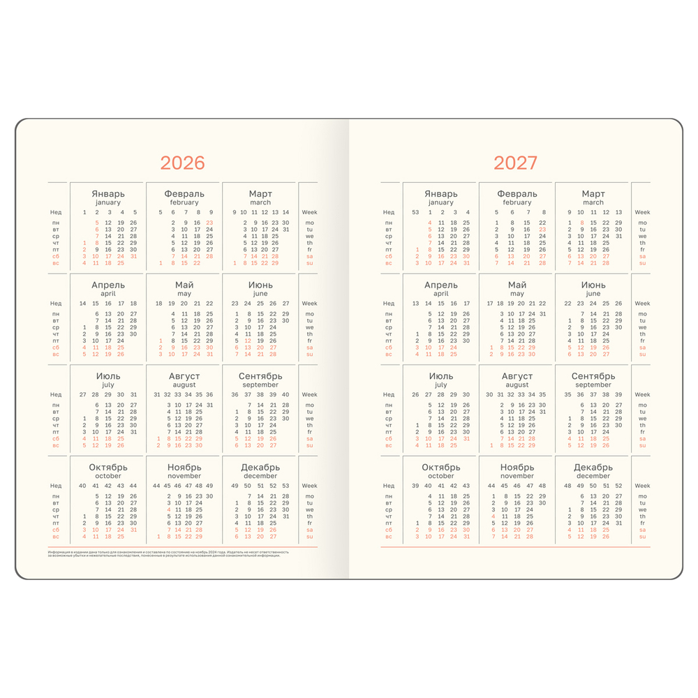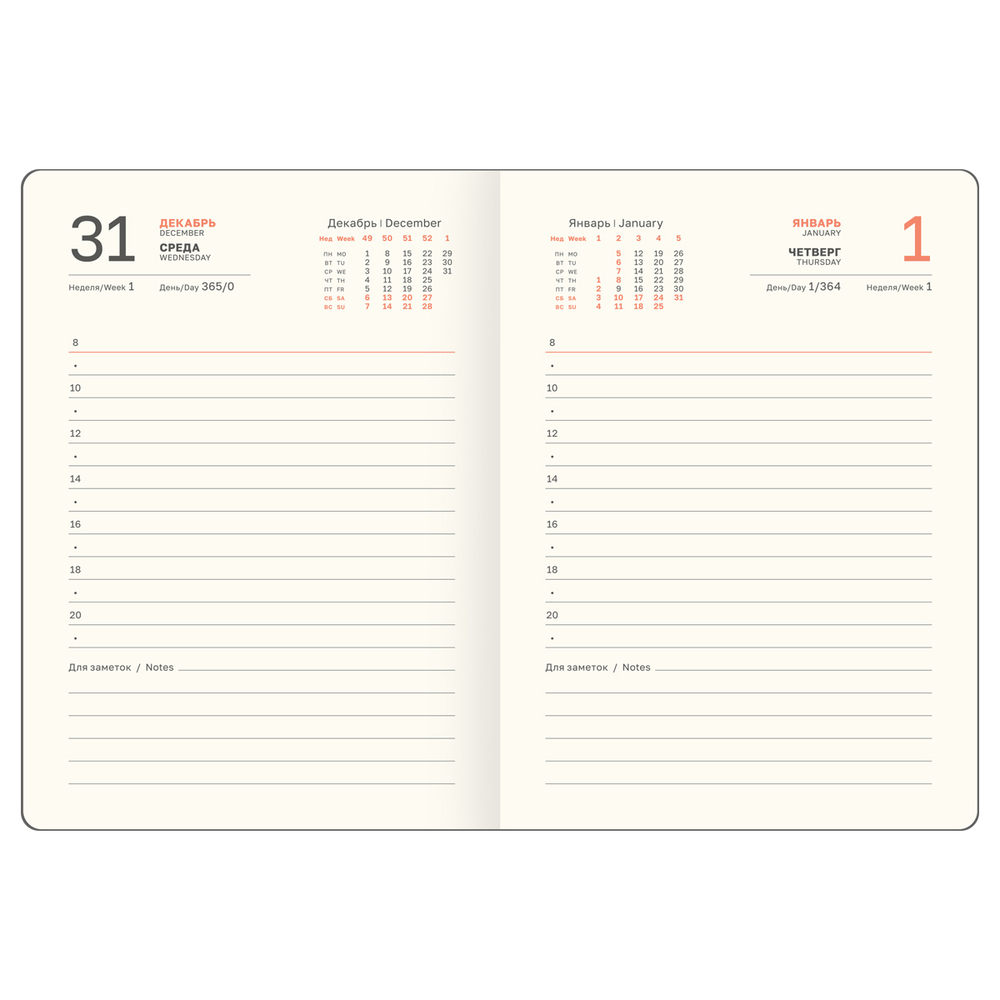 В датированном ежедневнике предусмотрена справочная информация, ежемесячный планер, календарь и другие полезные сведения.
