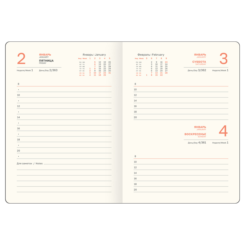 В датированном ежедневнике предусмотрена справочная информация, ежемесячный планер, календарь и другие полезные сведения.