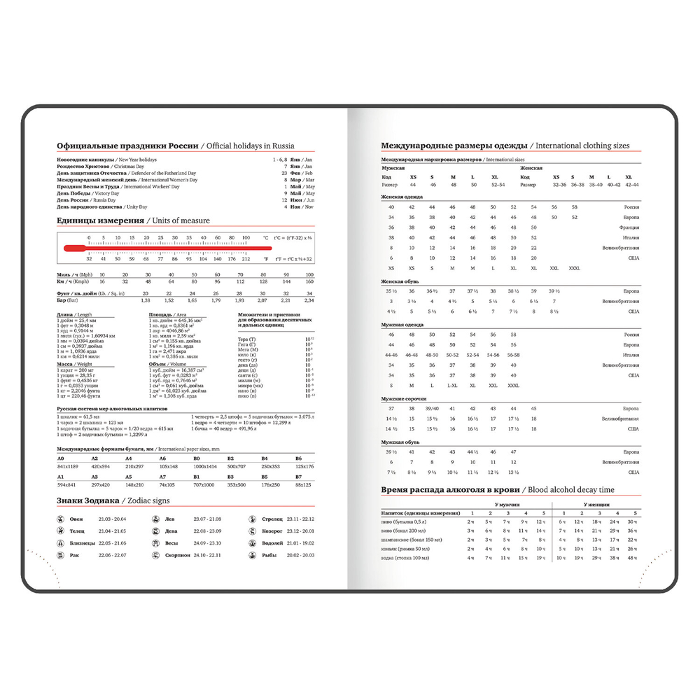 Твердая обложка стилизована под гладкую кожу. Материал обложки подходит для горячего тиснения. Цветные форзац и срез придают ежедневнику особый шарм. Дополнением является закладка-ляссе, с помощью которой при необходимости можно быстро открыть ежедневник на нужной странице. Ежедневник снабжен обширным справочным материалом. В конце есть 4 страницы для записей и заметок.