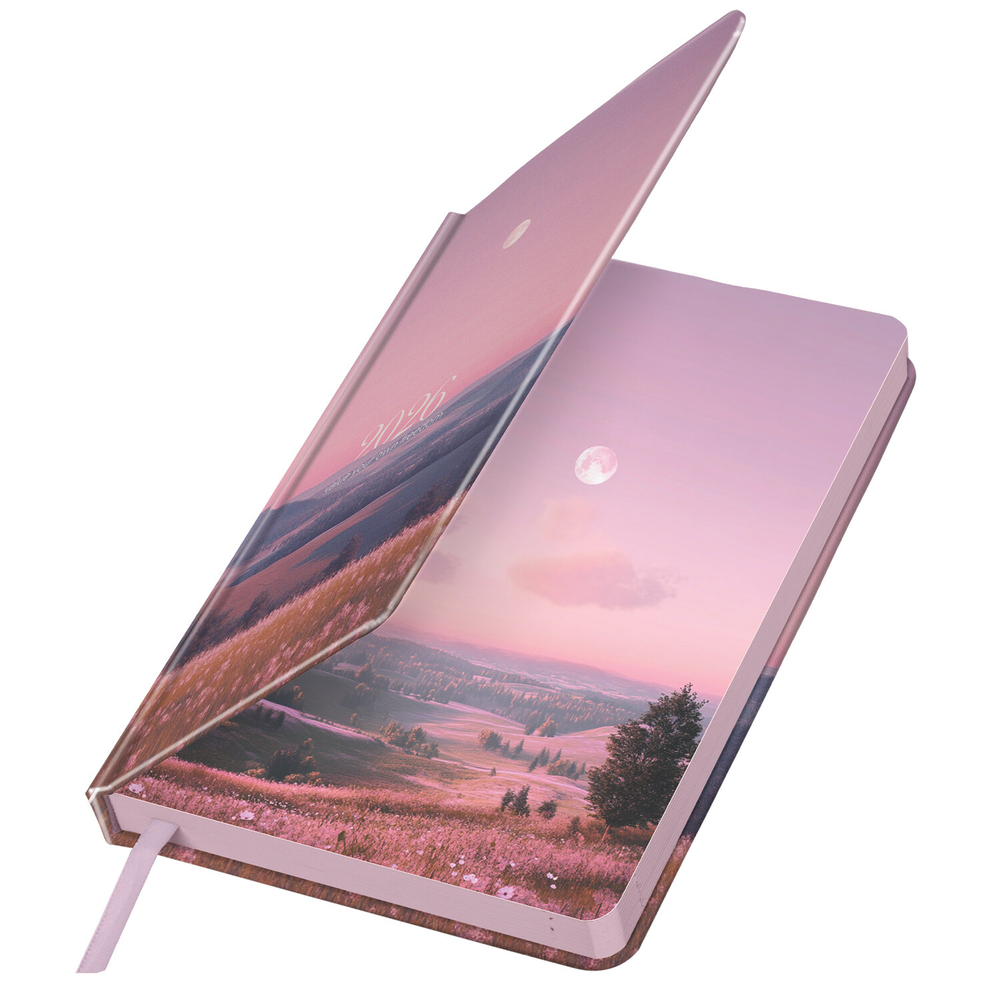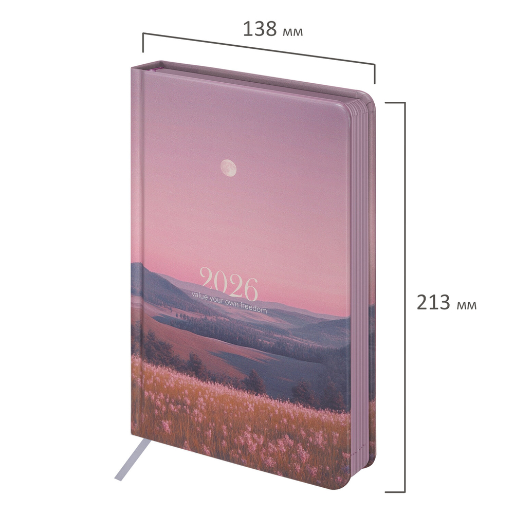Внутренний блок включает 168 листов белой бумаги плотностью 70 г/м2. Каждая страничка имеет перфорированный угол. Благодаря стандартному формату А5 (138х213 мм) ежедневник удобно использовать как в офисе, так и на выездных деловых встречах.