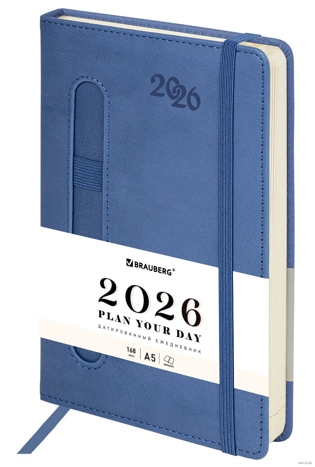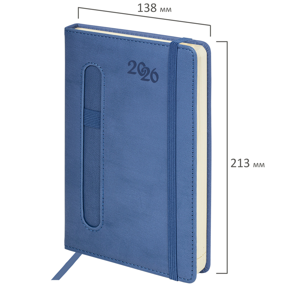 Внутренний блок включает 168 листов тонированной бумаги плотностью 70 г/м2. Каждая страница снабжена перфорированным уголком. Благодаря стандартному формату А5 (138х213 мм) датированный ежедневник удобно использовать как в офисе, так и на выездных деловых встречах. Твердая обложка стилизована под старую кожу в рубчик и выполнена в стильном синем цвете. Подходит для горячего тиснения.