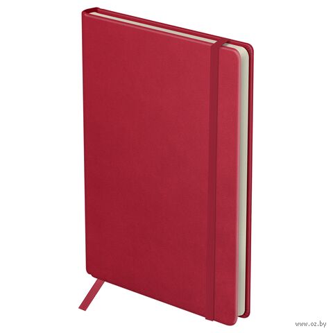 Твёрдая обложка выполнена из экокожи красного цвета. Перфорированные уголки, закладка-ляссе и фиксирующая резинка обеспечат комфорт и удобство при использовании.