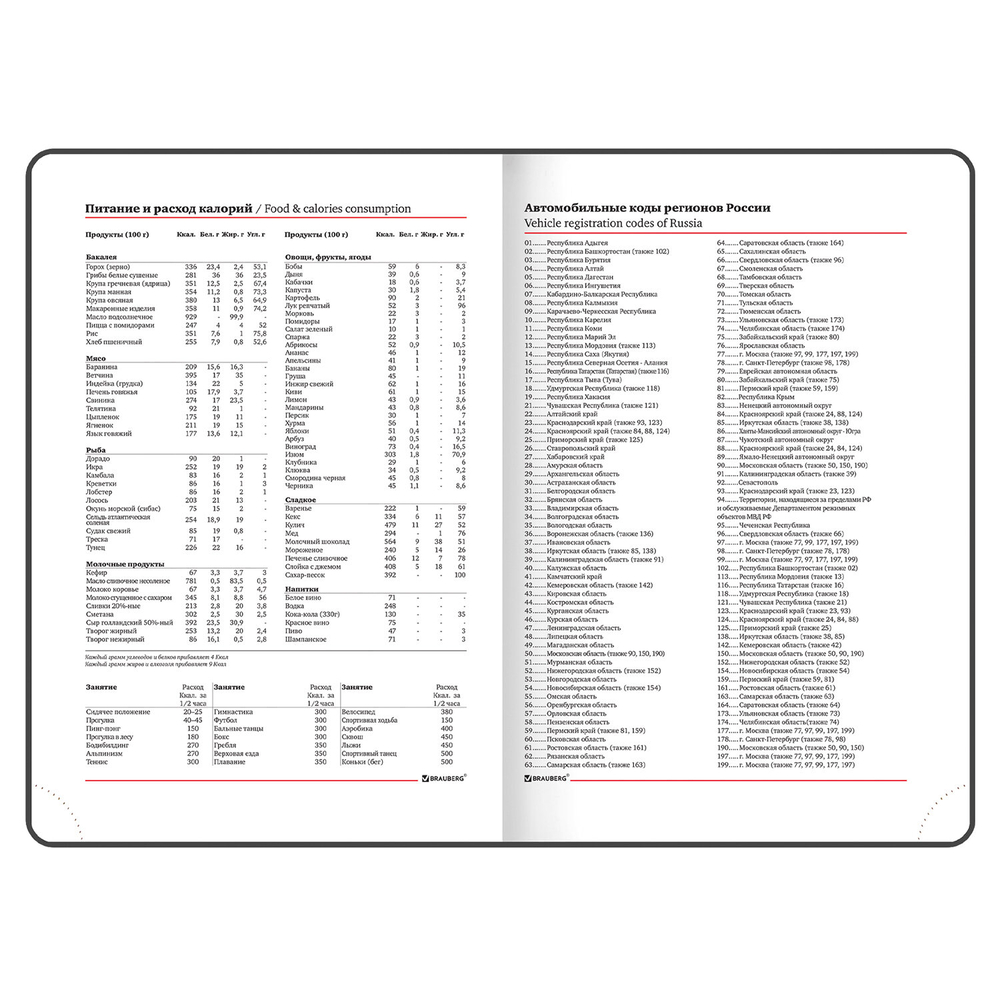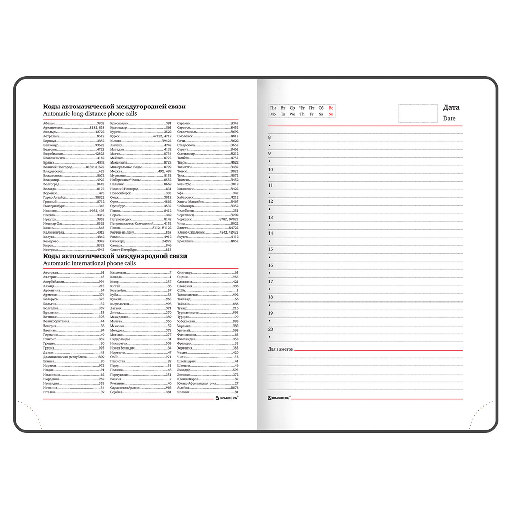 Форзац ежедневника представлен картами мира и России. Дополнением является закладка-ляссе, с помощью которой при необходимости можно быстро открыть ежедневник на нужной странице. Помимо прочего ежедневник снабжен справочным материалом. В конце ежедневника есть 7 страниц для записей и заметок. Выполнен в комбинации из двух цветов – черного и красного.